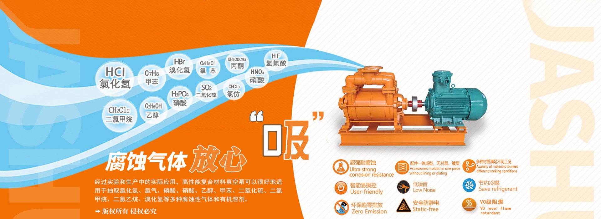 淄博華舜耐腐蝕真空泵有限公司主要生產(chǎn)各種型號和規(guī)格的水噴射泵、耐酸泵、耐酸真空泵等產(chǎn)品,是一家集科研開發(fā)、設計咨詢、生產(chǎn)、銷售、服務于一體,利用新型高性能復合材料,專業(yè)生產(chǎn)耐腐蝕液環(huán)真空泵的國家高新技術(shù)企業(yè), 坐落于“中國泵業(yè)名城”---山東省淄博市博山區(qū),公司通過了ISO9001質(zhì)量體系認證。公司獨立研發(fā)的具有多項自主知識產(chǎn)權(quán)的專利產(chǎn)品-耐腐蝕系列水環(huán)式真空泵,通過了省級科技成果鑒定,處于“國際先進水平”。 產(chǎn)品過流部件采用三大系列高性能復合材料(HS-V130、HS-V110、HS-V80)一體成型,耐腐蝕范圍廣、無襯層不脫落、節(jié)能效率高、運行可靠、環(huán)保節(jié)水、 體積小、重量輕、使用壽命長等特點。